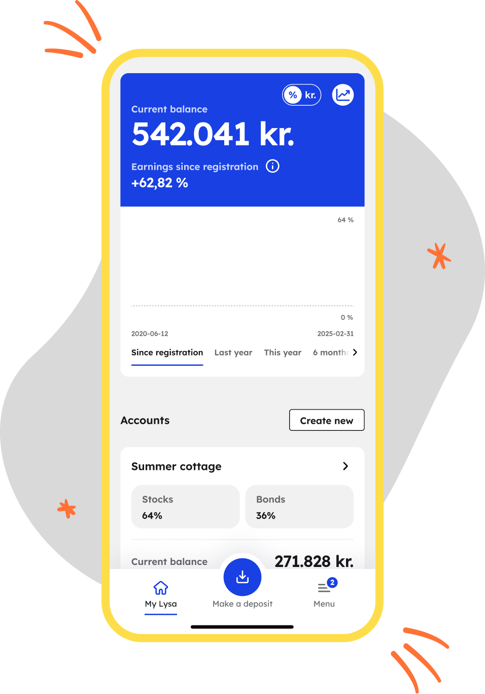 With Lysa you have the same protection as you are used to with your ordinary bank. This enables you to sign up and start investing directly without having to register with any other bank.